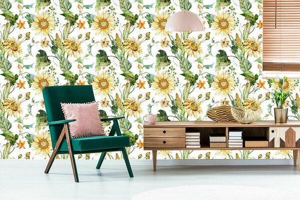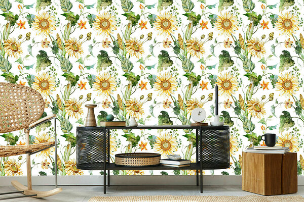 Corridor Sunflower Corn Leaves 3D TR-4133-VER-53