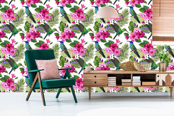 Colorful Hummingbirds, Leaves And Flowers TR-669-VER-53