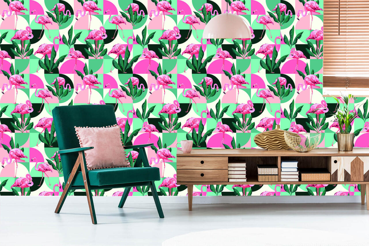 Fashionable Pink Flamingos And Leaves TR-743-VER-53