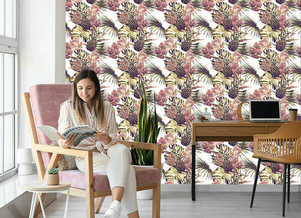 Pineapples With Monstera Leaves And Flowers TR-3781-VER-53
